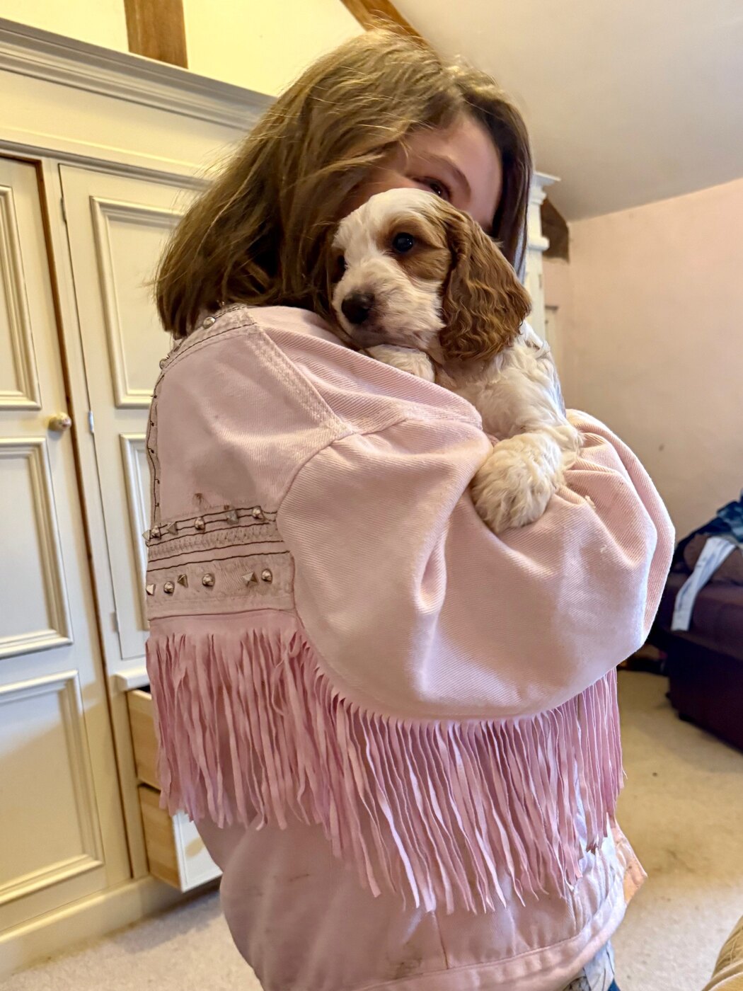 We have moved out of a very quiet and relaxed year so far, to the chaos of many of the girls coming in season, being pregnant, giving birth, or raising litters all at the same time! It's a wonderful time, but also very stresfull! It's been fun for our daughters who who are off school for Easter and adore the little puppies. Crumpet, Rio & Ruby all have lovely litters. They had easy births and are healthy and well. Mini (who was due a litter of pure Cockers) sadly had a worse time with a difficult birthing, and has a litter of 3. A very healthy boy and girl, but 1 very tiny and weak little girl who we are supporting heavily. Mini is in the house with us and Tiny (as the little girl is called) is on Mum & a bottle every few hours to try to help her through. Fingers crossed for her!